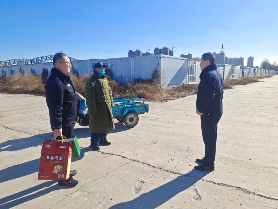 近日,金盾公司黨支部書記、執(zhí)行董事范丙磊同志到方艙醫(yī)院駐勤點(diǎn)走訪慰問一線職工譚洪全同志,公司黨支部成員呂鵬、保安保潔服務(wù)二隊(duì)隊(duì)長朱孝輝陪同。