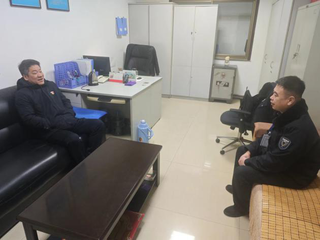 2月10日大年初一,市保安公司黨委委員、紀(jì)委書(shū)記李保華到金融護(hù)衛(wèi)中心建行大隊(duì)走訪慰問(wèn)在崗值班員工,對(duì)大家的辛勤工作表示感謝,并向他們的家屬致以親切問(wèn)候和美好祝愿!