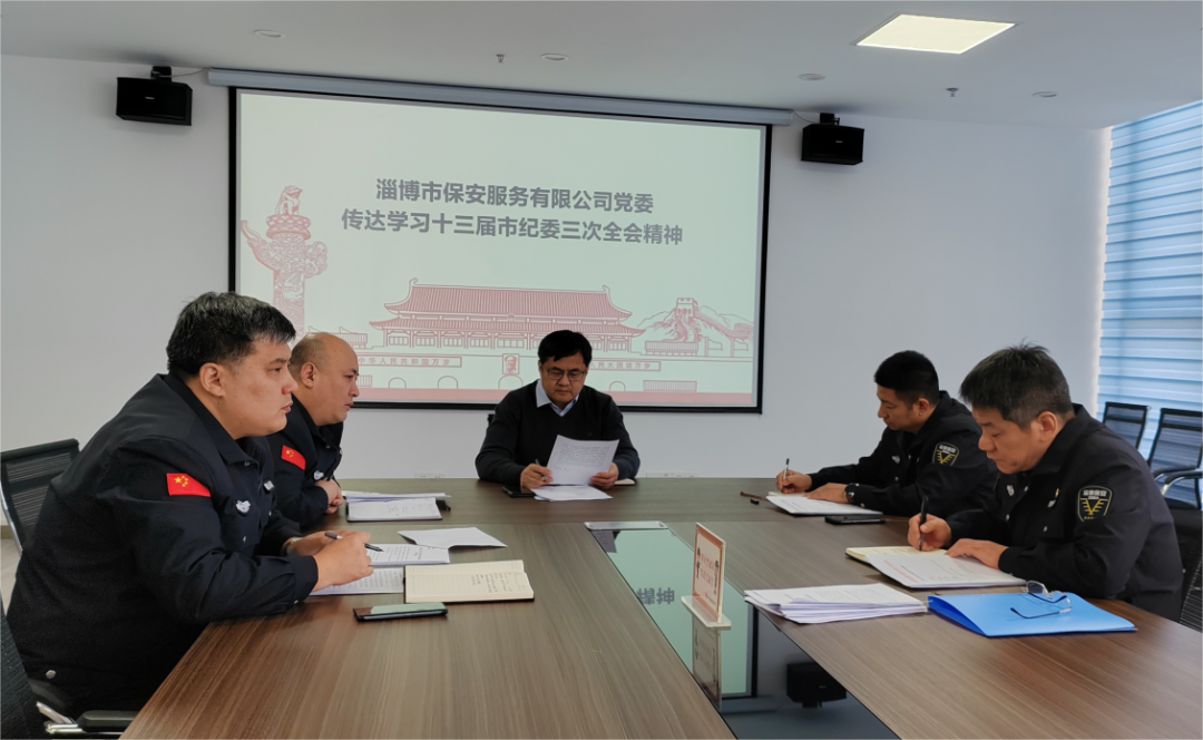 近期,市保安公司召開黨委會議,傳達學(xué)習十三屆市紀委三次全會精神。公司黨委書記、董事長付志欣同志主持會議并講話,班子成員參加會議。