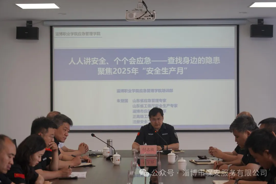 為深入貫徹市國資委“安全生產月”活動要求,6月4日,市保安公司聚焦“人人講安全、個個會應急——查找身邊的隱患”,邀請山東省應急管理專家、正高級工程師,山東齊安檢測技術有限公司安全技術部經理朱登國進行專題授課,市保安公司黨委書記、董事長付志欣主持,公司黨委委員,各部室、中心、子公司,各大隊負責人及安全分管領導參會。