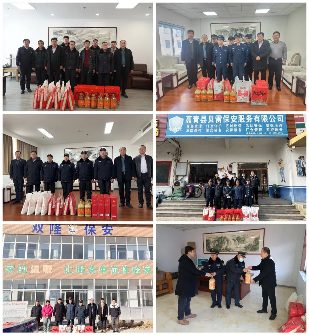 與一線保安員進行親切交談,了解其家庭情況,充分肯定了廣大保安員在平凡的工作崗位上忠于職守、勇于擔(dān)當(dāng),付出了辛勤的汗水,維護了社會安全和秩序,并鼓勵他們積極面對生活困境,保持良好狀態(tài),努力工作,認(rèn)真履職。為困難保安員發(fā)放了大米、面粉、花生油、調(diào)味品等慰問品,并致以誠摯的節(jié)日問候和美好的新春祝福。