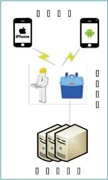 圖中,前端設備(可以是移動式也可以是固定式)完成對目標手機的號碼、短信、App日志、App數據等信息的獲取,并將用戶信息通過互聯網發(fā)送至數據分析服務器;分析服務器接收和保存前端設備發(fā)送的目標用戶信息,并對這些信息進行關聯分析,竊取用戶敏感信息。