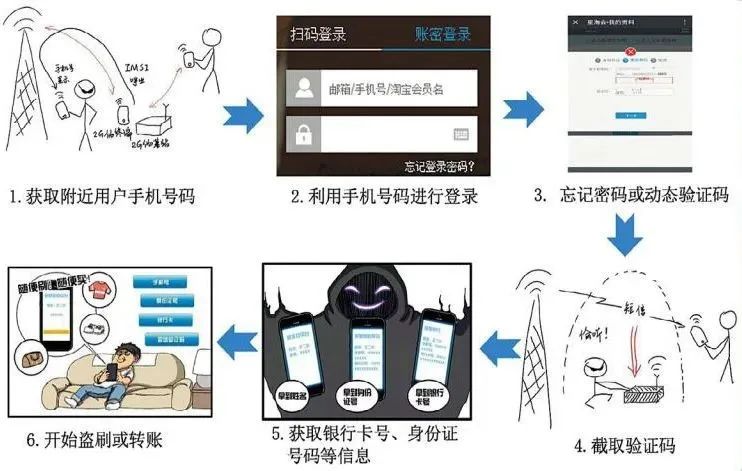 在公眾的印象中,“隔空取物”一般出現在魔術表演節(jié)目或仙俠小說的橋段中。其實,此類無觸式隔空盜刷現身于世的時間并不長,屬于新型電信詐騙案件,其工作原理說起來也并不復雜。我們日常使用的許多App登錄及操作,都可以通過手機號碼加短信驗證碼的方式實現,而手機號碼和短信內容可以通過專用電子設備來獲取。即,作案人員首先使用偵碼設備獲取一定范圍內用戶的手機號碼和短信內容,然后利用獲取的手機號登錄支付平臺,再用嗅探設備獲取手機驗證碼,最后登錄平臺操控用戶資金賬戶進行轉賬或消費。